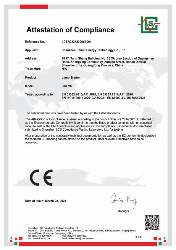 Shenzhen Damin Energy Technology Co.,Ltd. Mr.Zhang Email:dm@daminenergy.com Headquarters address:B717, Tang Shang Building, No. 35 Xinqiao Section of Guangshen Road, Shangxing Community, Xinqiao Street, Baoan District, Shenzhen City, Guangdong Province, China Factory address:4/F, Building 6, Guanghui Zhigu, No. 136 Yongjun Road, Dalingshan Town, Dongguan City, Guangdong Province,China